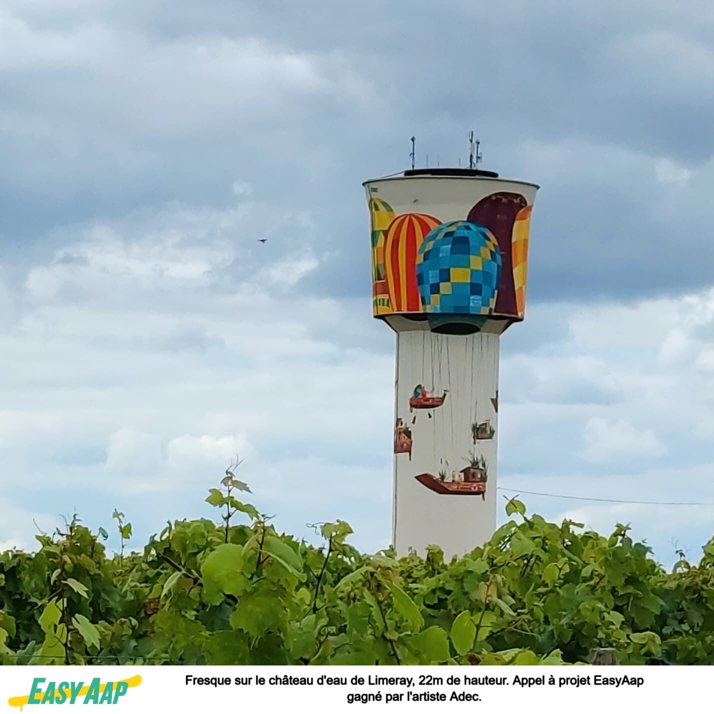 - Fresque Château d’eau Limeray. Appel à projet EasyAap gagné par l’artiste Adec.