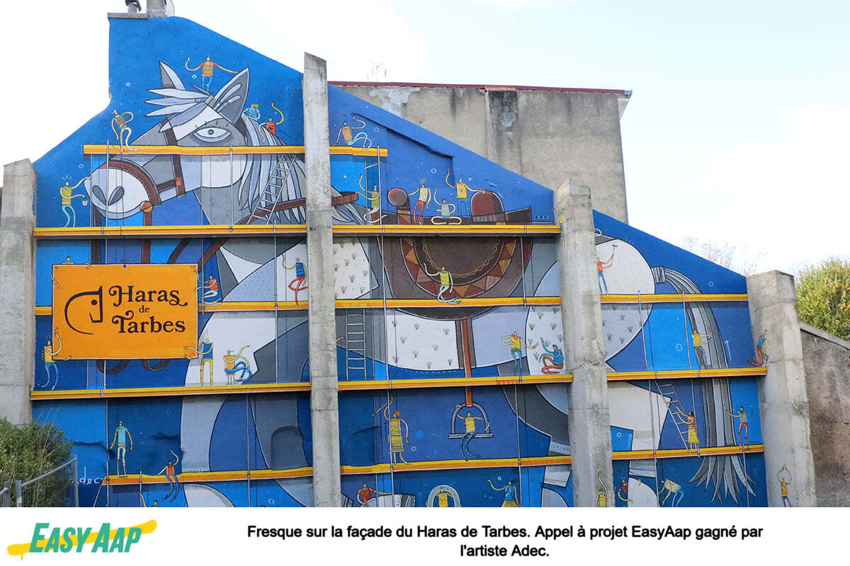- Fresque façade Haras de Tarbes. Appel à projet EasyAap gagné par l’artiste Adec.
