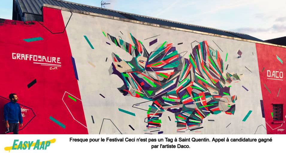 - Fresque festival Ceci n’est pas un Tag. Appel à candidature street art EasyAap gagné par l’artiste Daco.