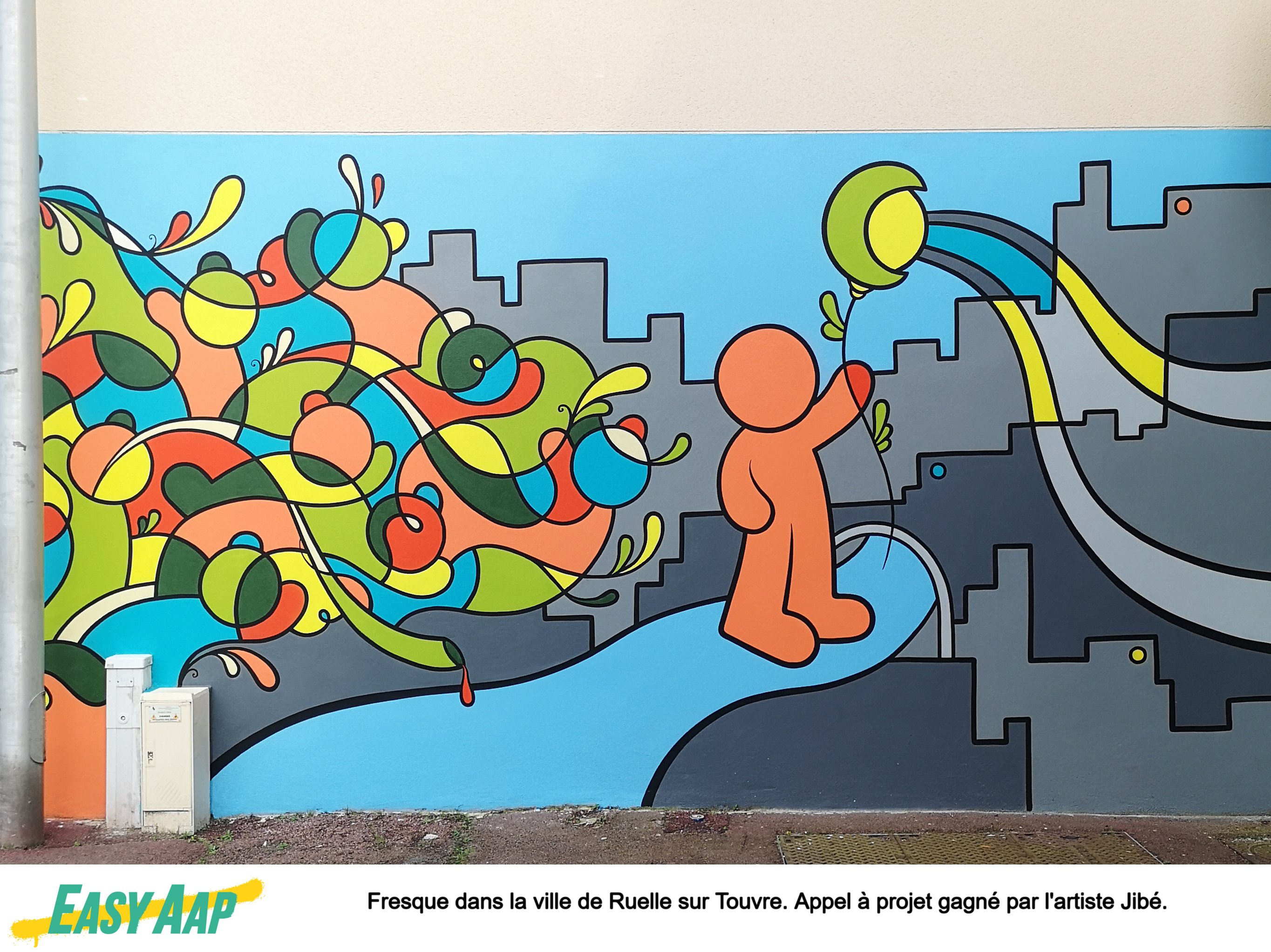 - Fresque Ruelle sur Touvre. Appel à projet street art EasyAap gagné par l’artiste Jibé.