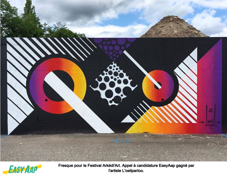 - fresque Festival Arkédi’Art. Appel à candidature street art EasyAap gagné par l’artiste L’Oeilpartoo.