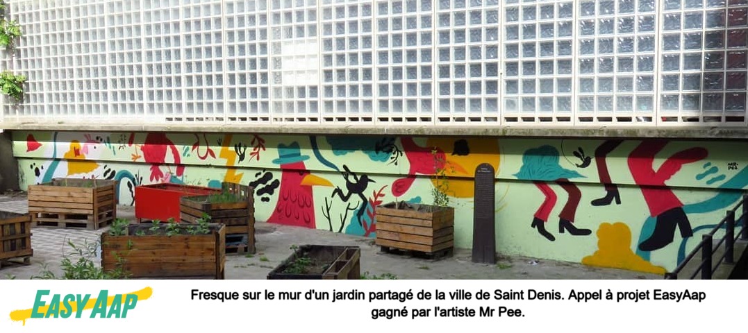 - Fresque à Saint Denis. Appel à projet street art EasyAap gagné par l’artiste Mr Pee.