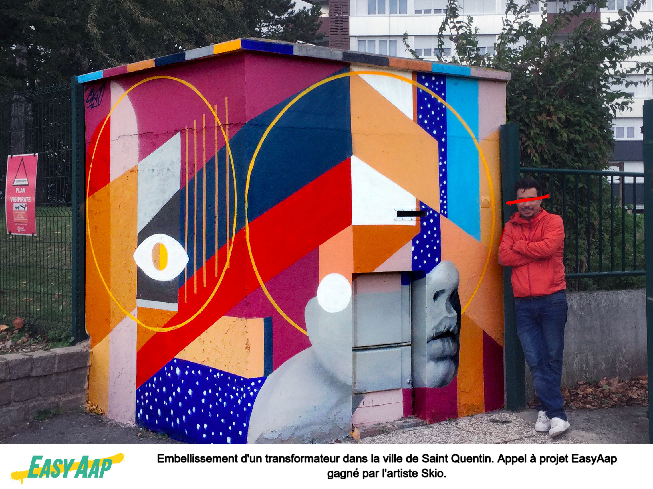 - Fresque transformateur St Quentin. Appel à projet street art EasyAap gagné par l’artiste Skio.
