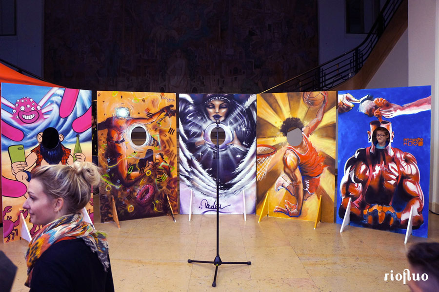 4 à 6 artistes s’affrontent picturalement dans un temps limité. Le public vote tout au long de la performance pour élire la meilleure création et son artiste préféré. Les créations sont ensuite mises à la disposition du public pour y glisser leurs têtes et se prendre en photo.