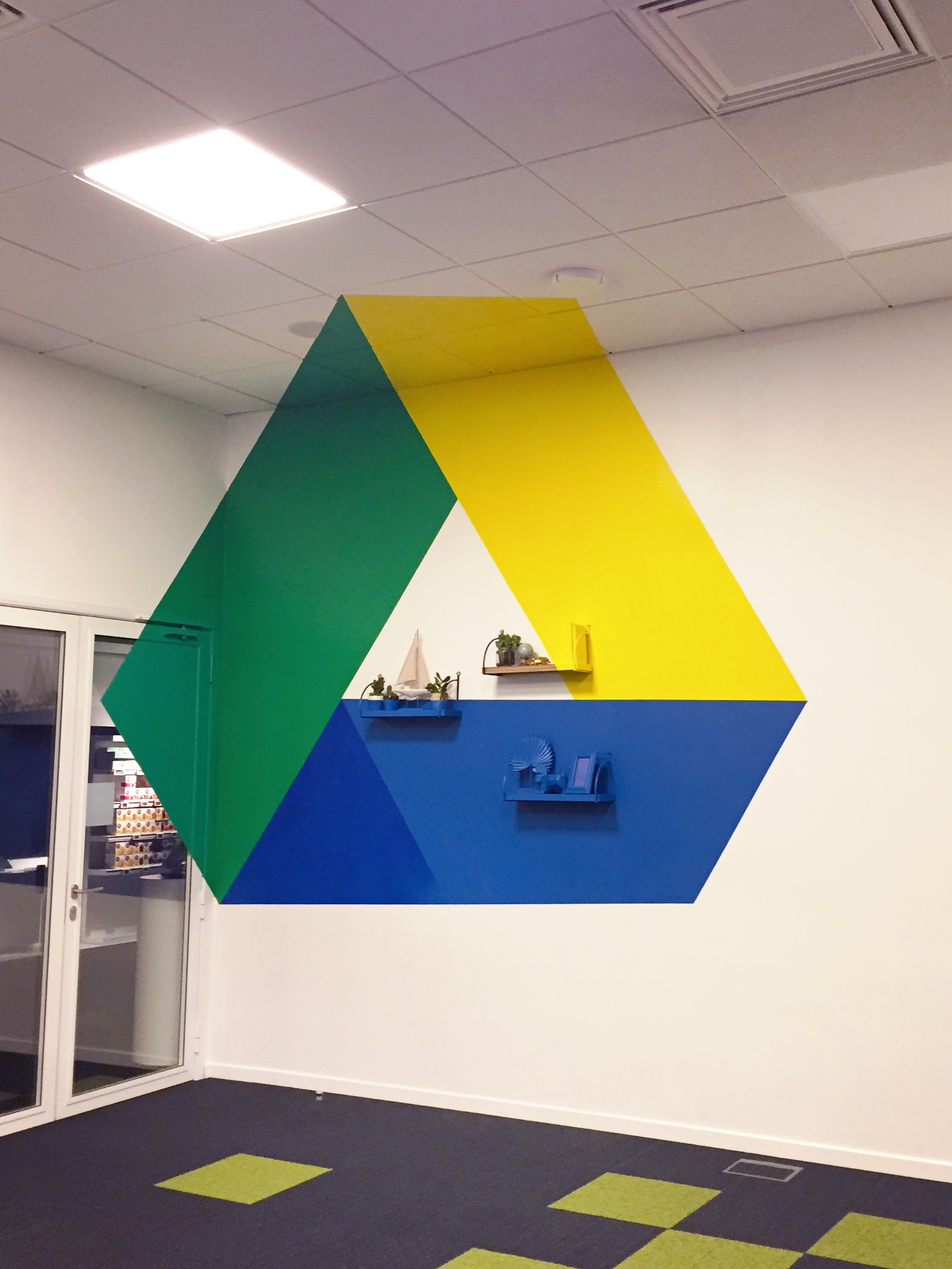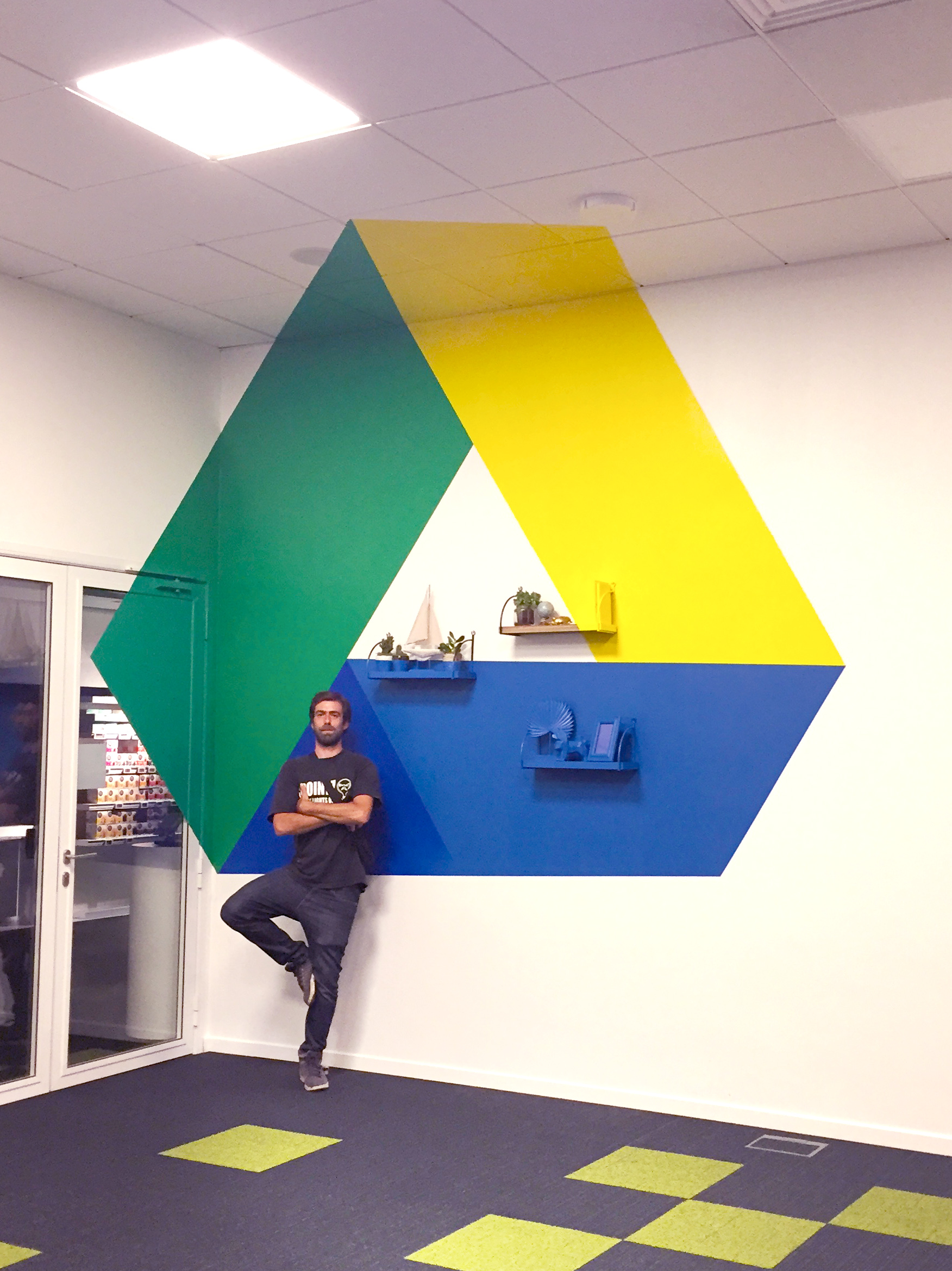 À l’occasion de l’aménagement de leur salle de leur meeting room Google Drive, nous avons réalisé une anamorphose mi-sticker mi-peinture pour l’entreprise Atos, spécialiste de la transformation digitale, afin de donner plus de perspective ludique à ce lieu. Merci à Aressy pour avoir fait appel à Riofluo et à l’artiste Djalouz pour sa précision d’exécution. #anamorphose #atos #aressy #machine learning #deco #agencement #streetart # digitale #googledrive #