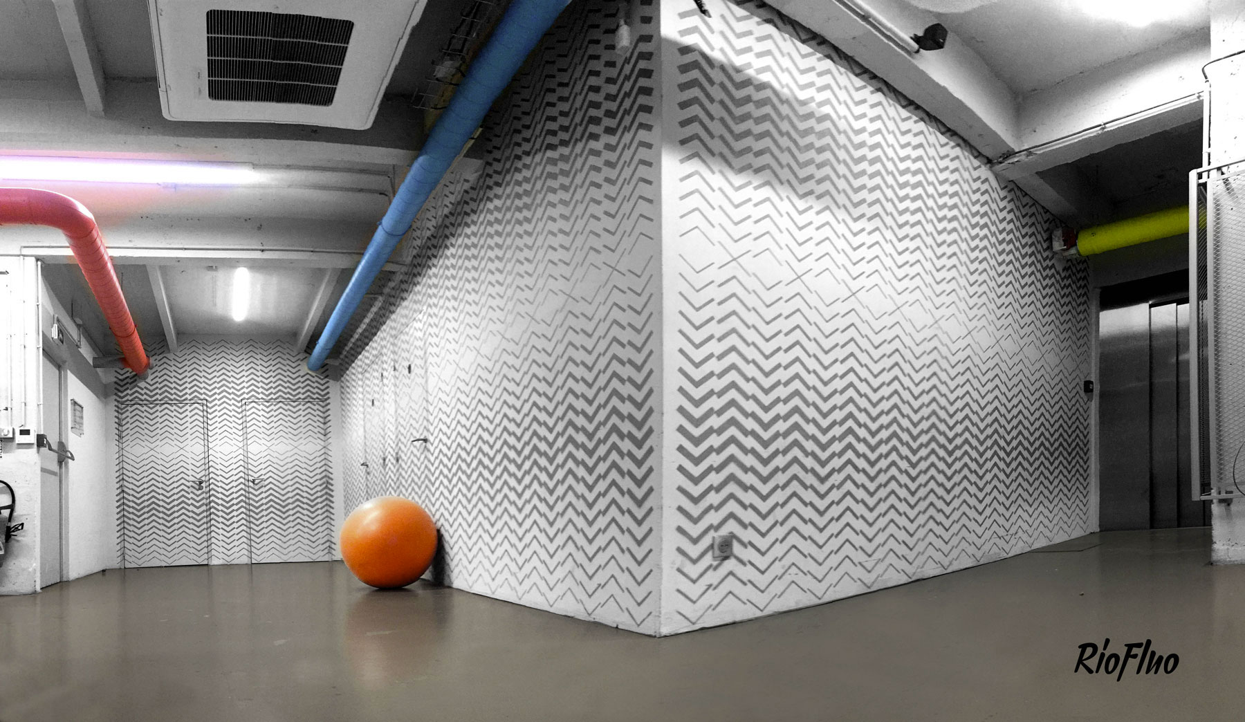 La Gymroom a quant à elle été personnalisée par l’artiste Alex Pariss, spécialiste d’art optique. Le but étant ici de jouer avec l’appréhension de l’espace.