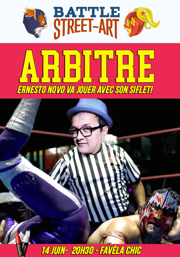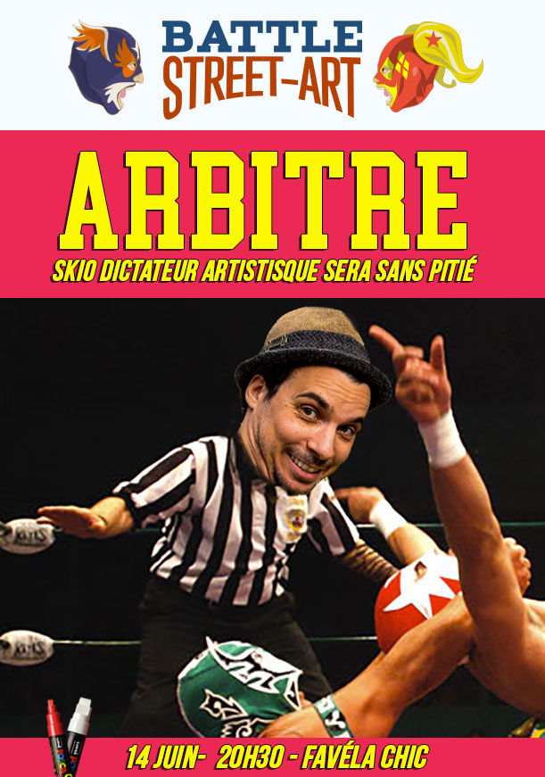 Les artistes se confrontent sous le thème de la Lucha libre et créent en 30 minutes l’oeuvre la plus belle et c’est le public qui juge et désigne le gagnant.