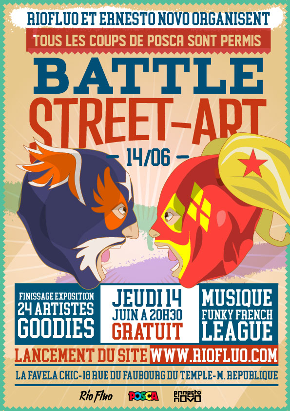 Pour la sortie du nouveau site Riofluo.com, nous vous avons offert un event d’anthologie ! Un Battle Street-Art avec 4 adversaires, 2 MC’s, 2 ring girls dans une ambiance dingue avec des gages et des cadeaux.