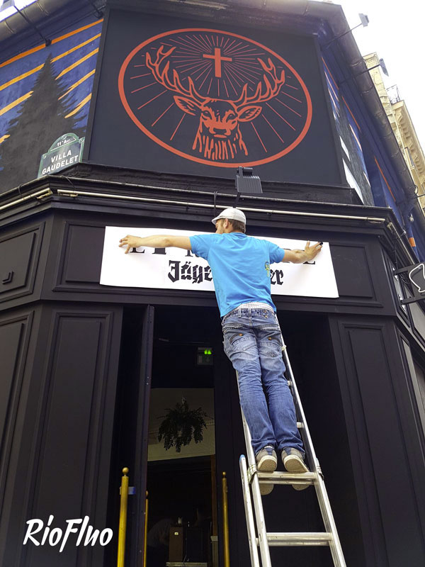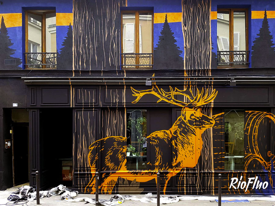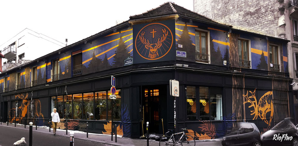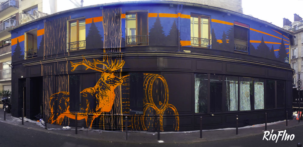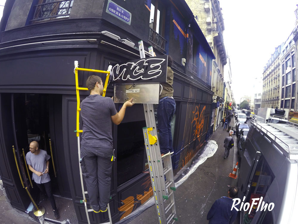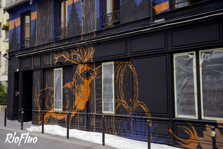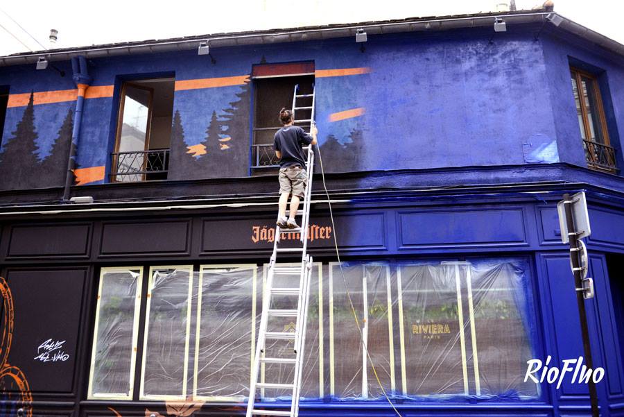 A l’occasion de l’Euro, Riofluo a été appelé pour travailler sur une peinture murale pour Jägermeister et Vice qui se sont associés pour créer un bar éphémère durant un mois à Paris où les soirées pleines de surprises se sont enchainées.