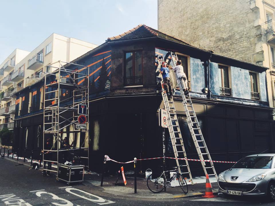 Une peinture en plein Paris par les artistes Skio et Caligr.
