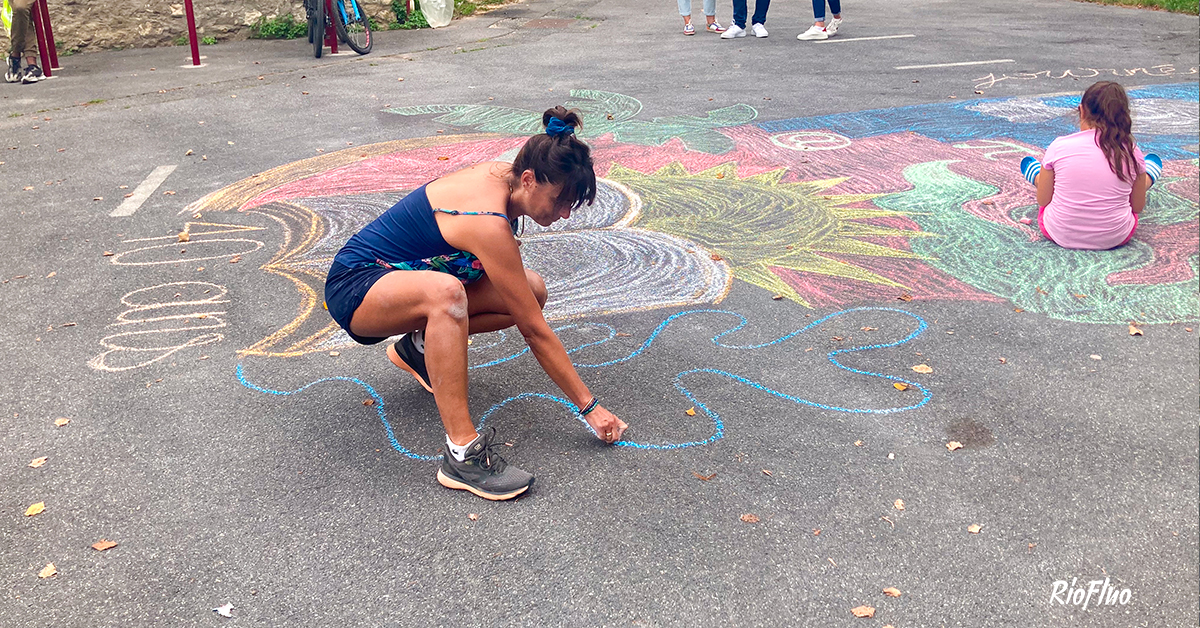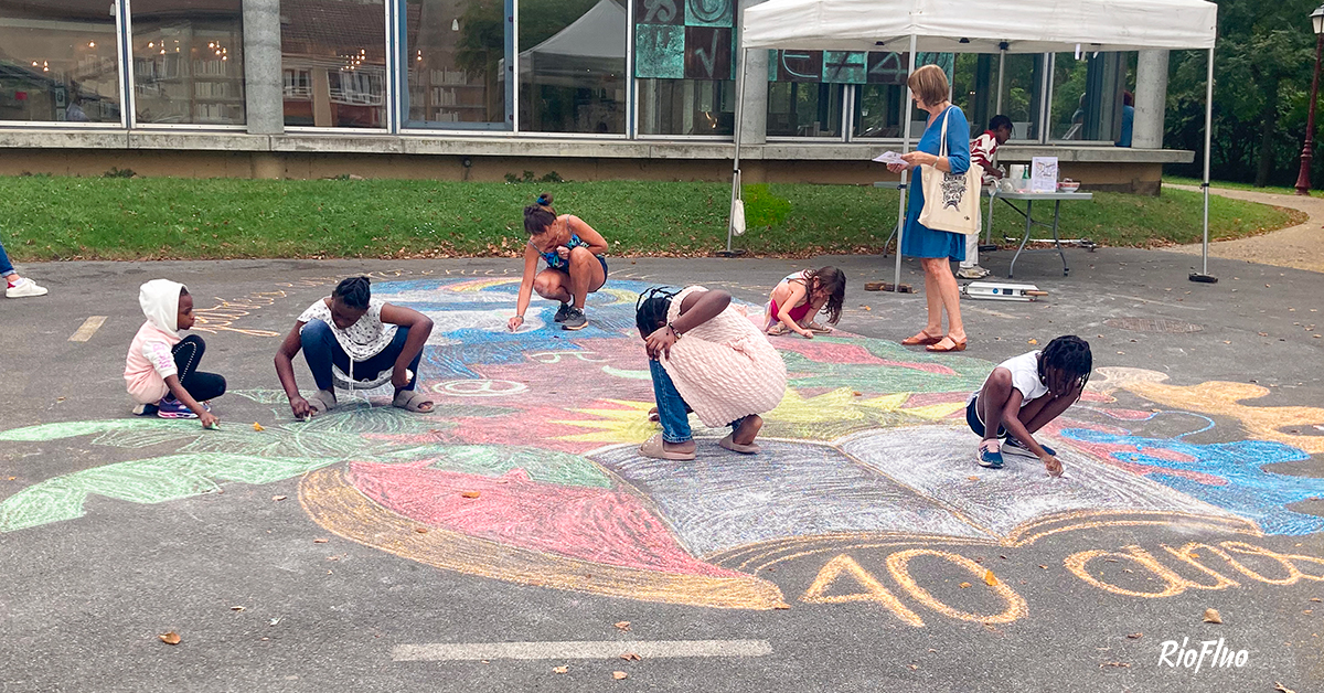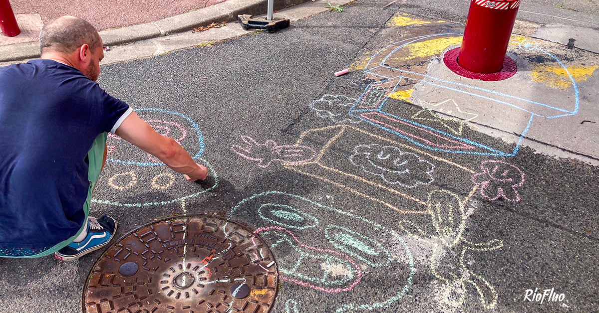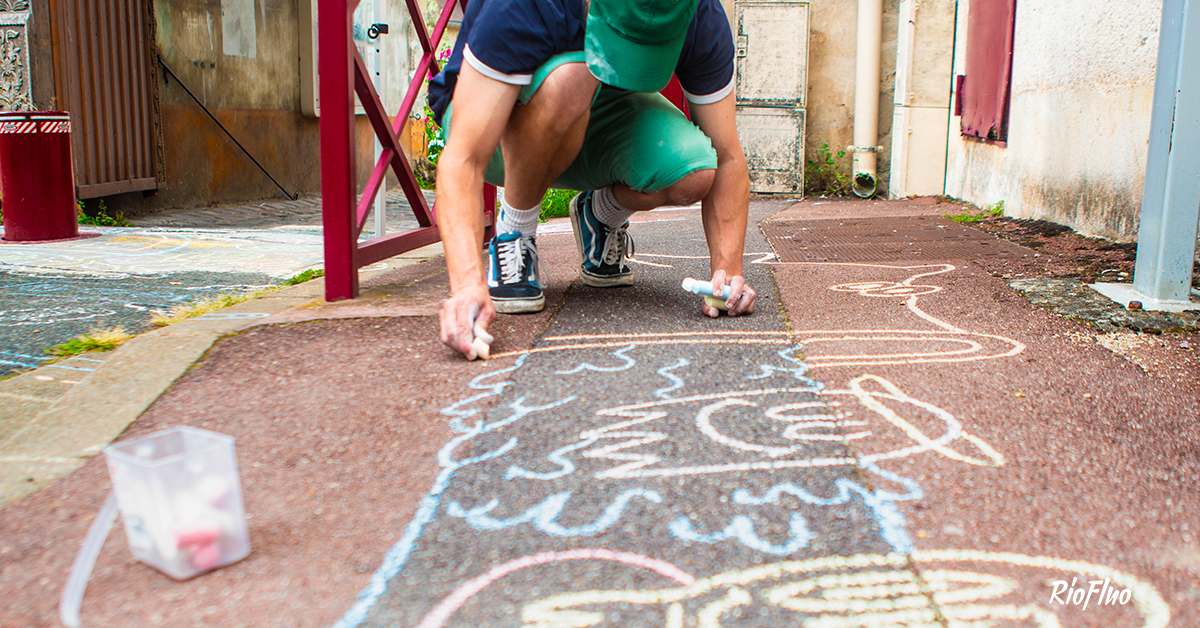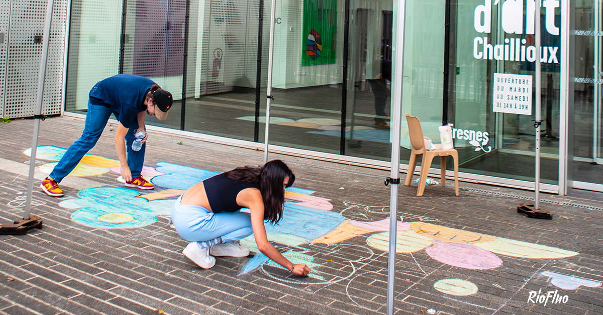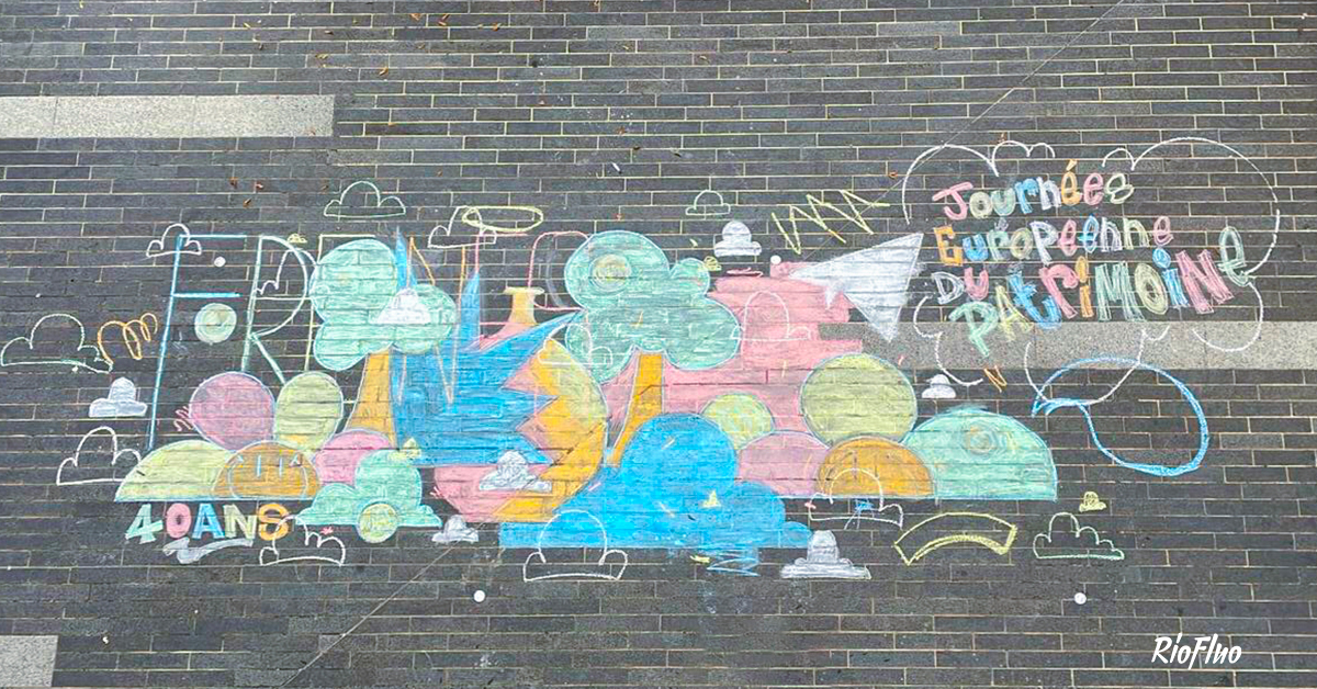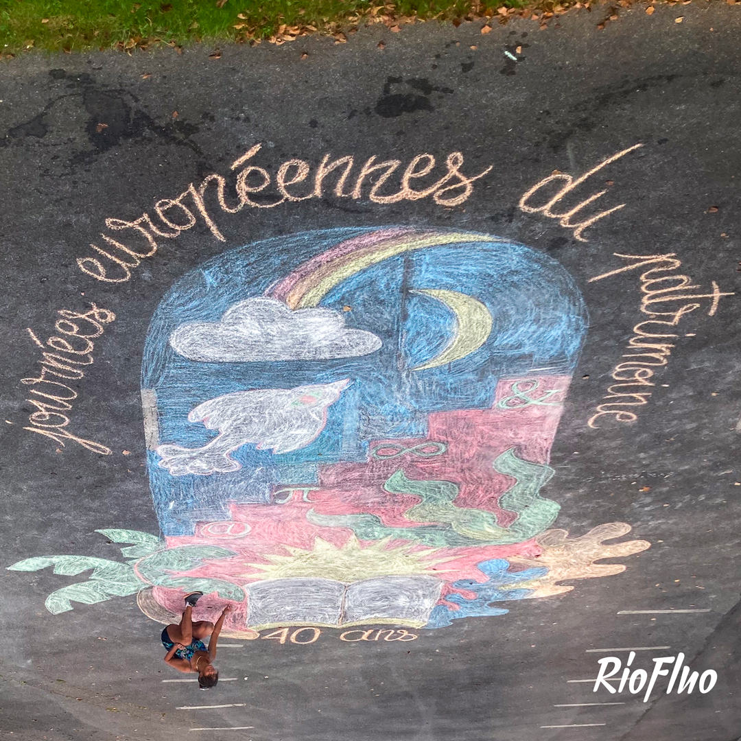 Riofluo a été sollicitée par la ville de Fresnes pour les 40ans des Journées Européenes du Patrimoine : 3 fresques au sol à la craie au sol ont été réalisées devant des monuments du patrimoine de la ville.