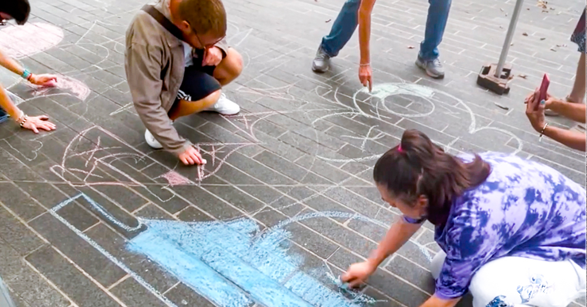 Animations, Street-art, Live Painting, animation événementielle, animation artistique, Aude Villerouge, Kikor, Lose, fresque participative, Journées Européennes du Patrimoine, Fresnes, fresque au sol, fresque à la craie