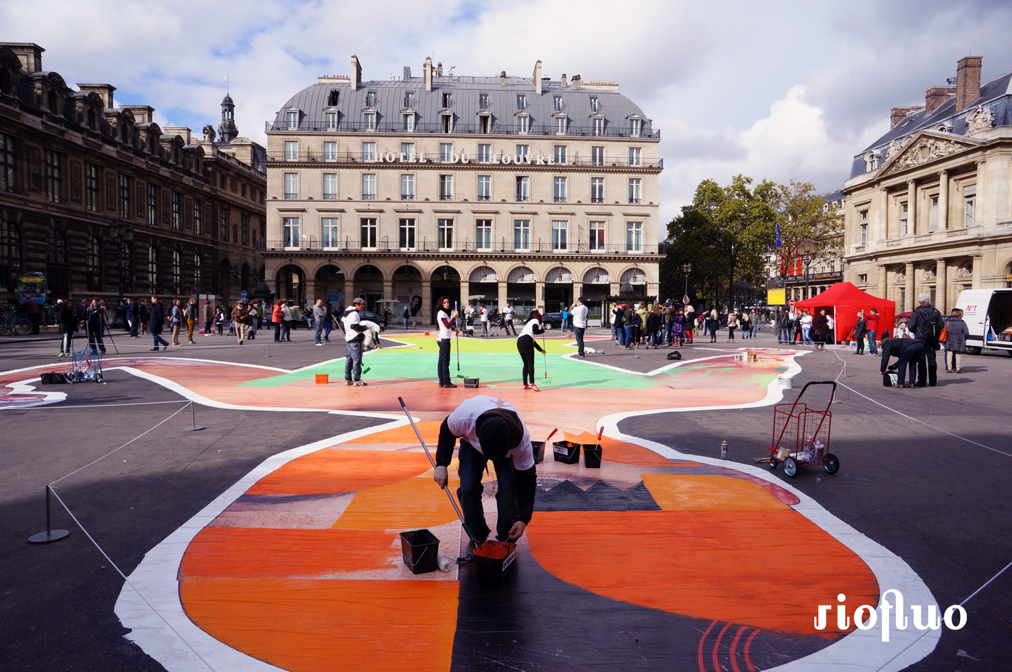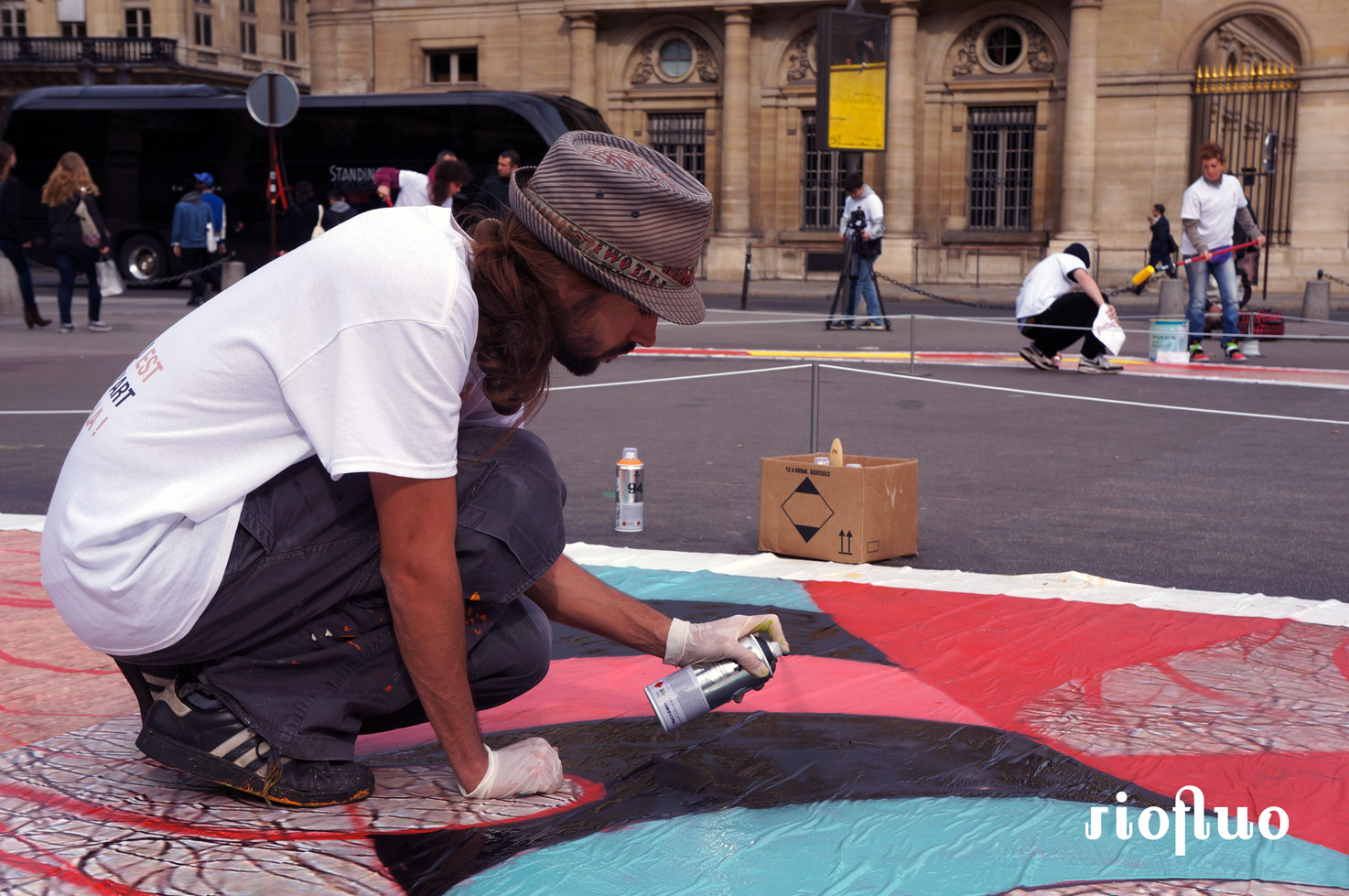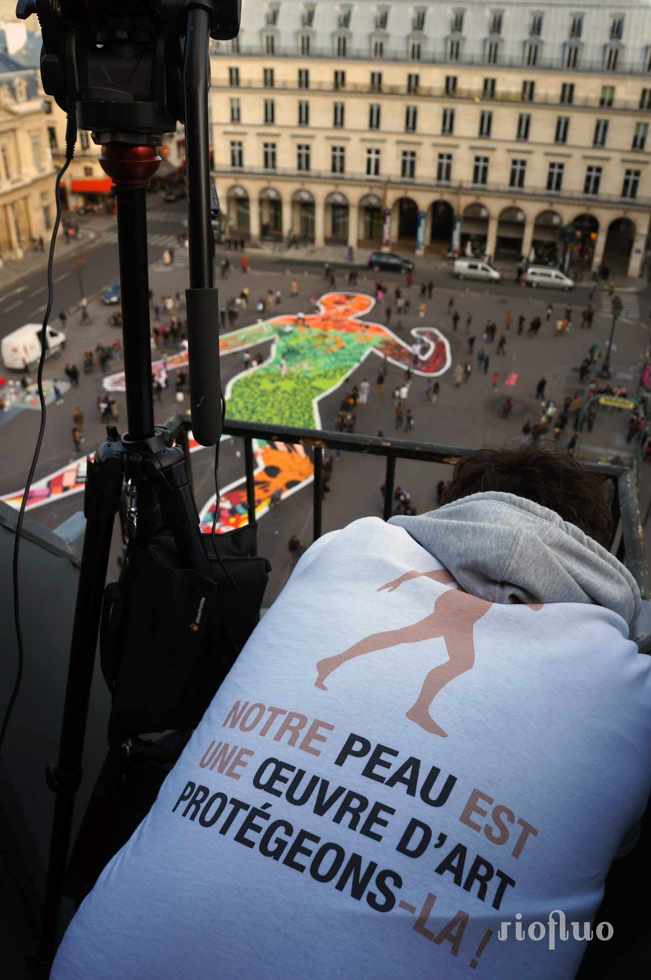 Ce corps a ensuite été customisé par 7 street artistes selon un code chromatique, pour créer une cartographie artistique des zones sensibles liées à la maladie ; des couleurs chaudes pour marquer les zones à risque et des couleurs froides pour les zones moins sensibles. RioFluo a également conceptualisé et crée toute la communication de l’évènement autour du slogan « Notre peau est une œuvre d’art, protégeons là ».