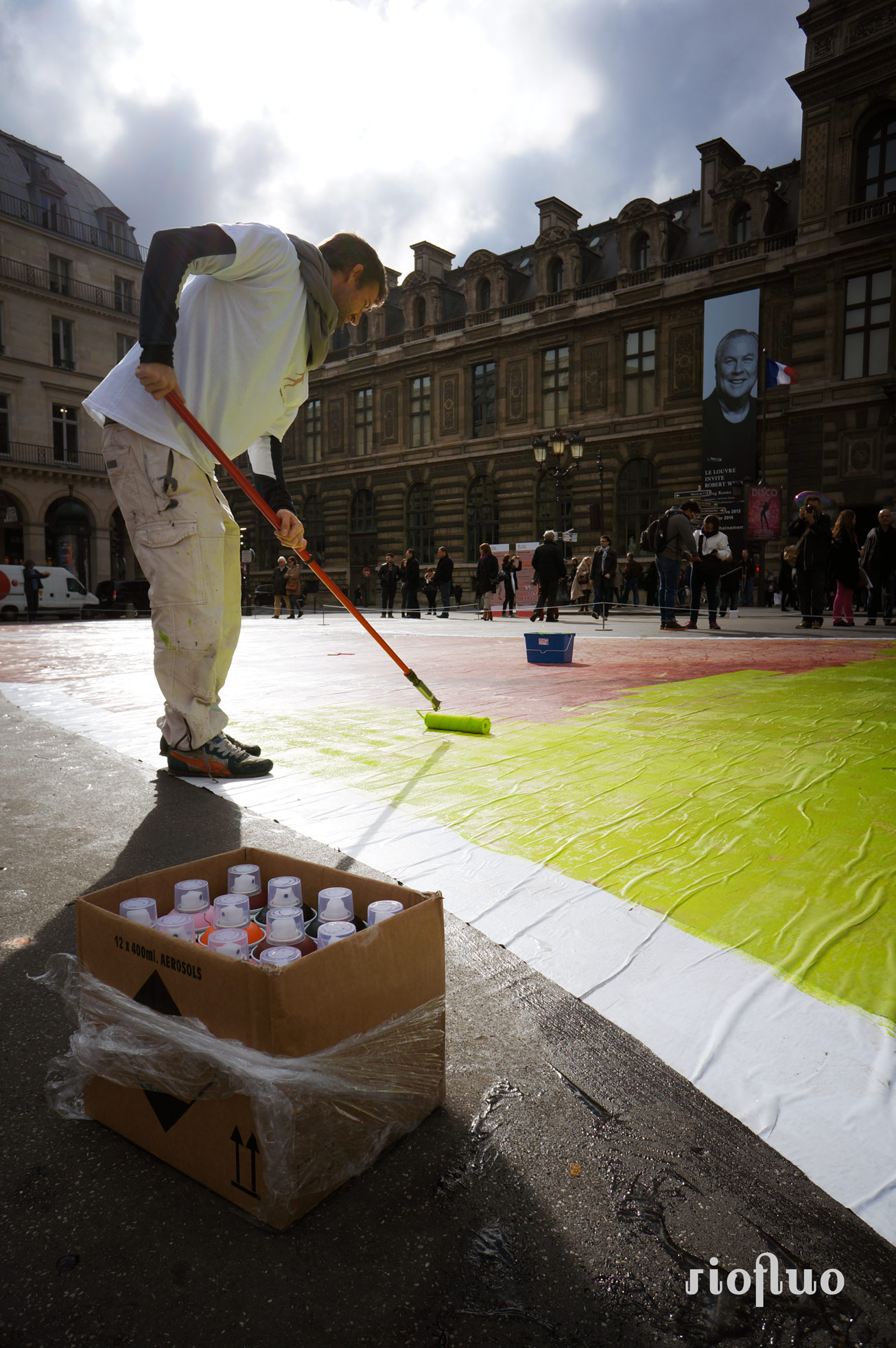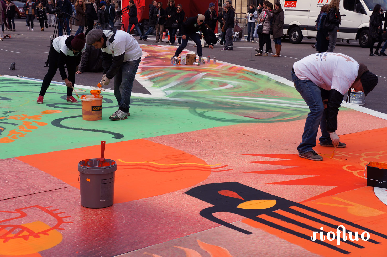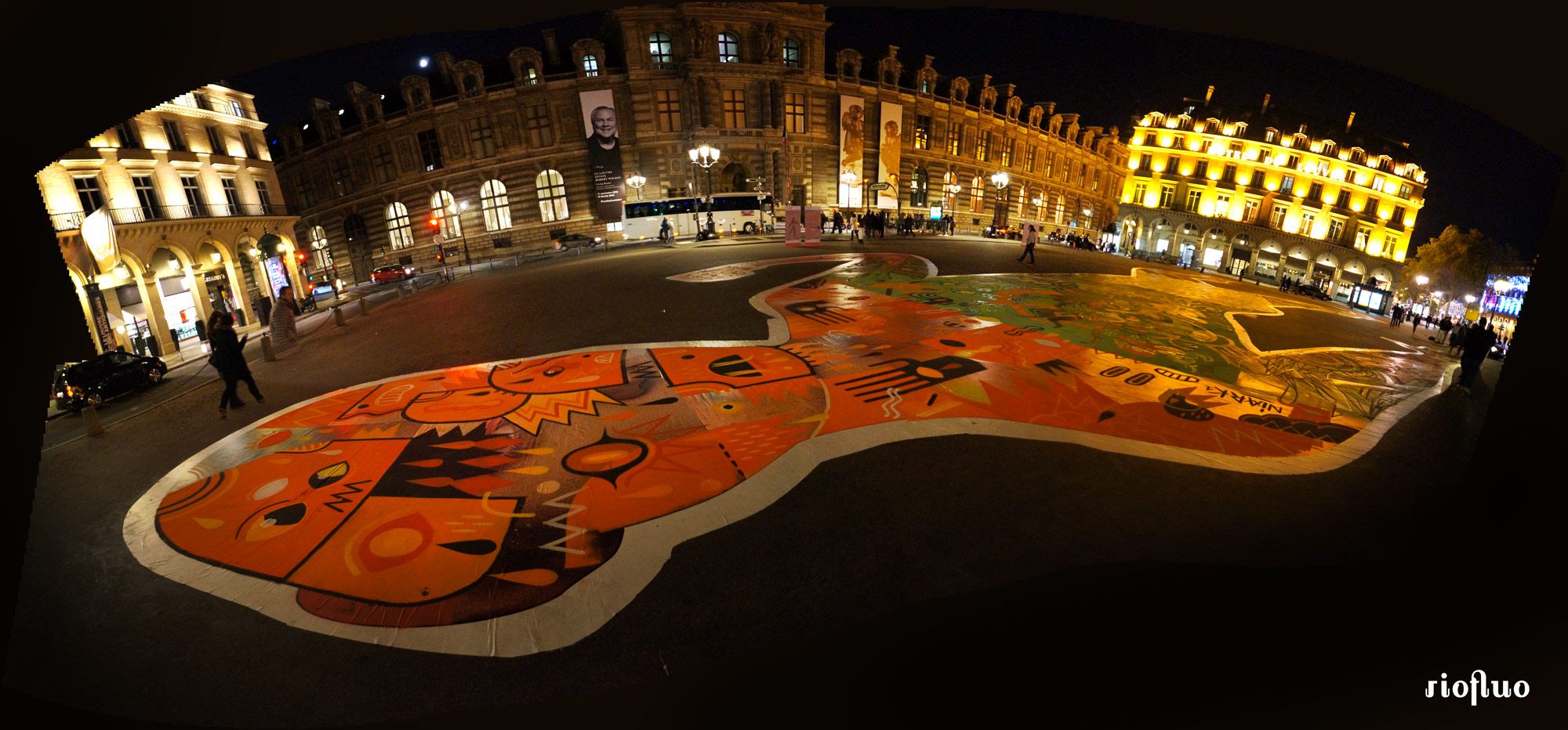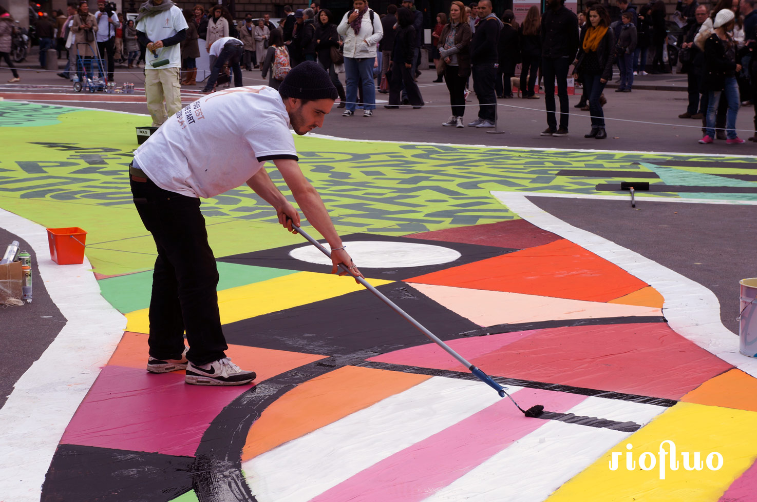 Ce corps a ensuite été customisé par 7 street artistes selon un code chromatique, pour créer une cartographie artistique des zones sensibles liées à la maladie ; des couleurs chaudes pour marquer les zones à risque et des couleurs froides pour les zones moins sensibles. RioFluo a également conceptualisé et crée toute la communication de l’évènement autour du slogan « Notre peau est une œuvre d’art, protégeons là ».