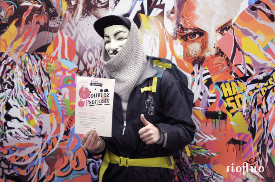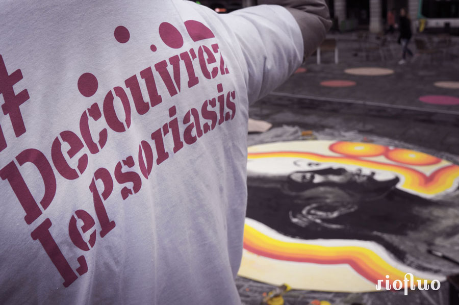 Suite au succès du projet « La peau s’affiche », l’agence RP LJ COM et la fondation Léo Pharma ont demandé à RioFluo de réfléchir à une opération de sensibilisation grand public sur la maladie du Psoriasis.