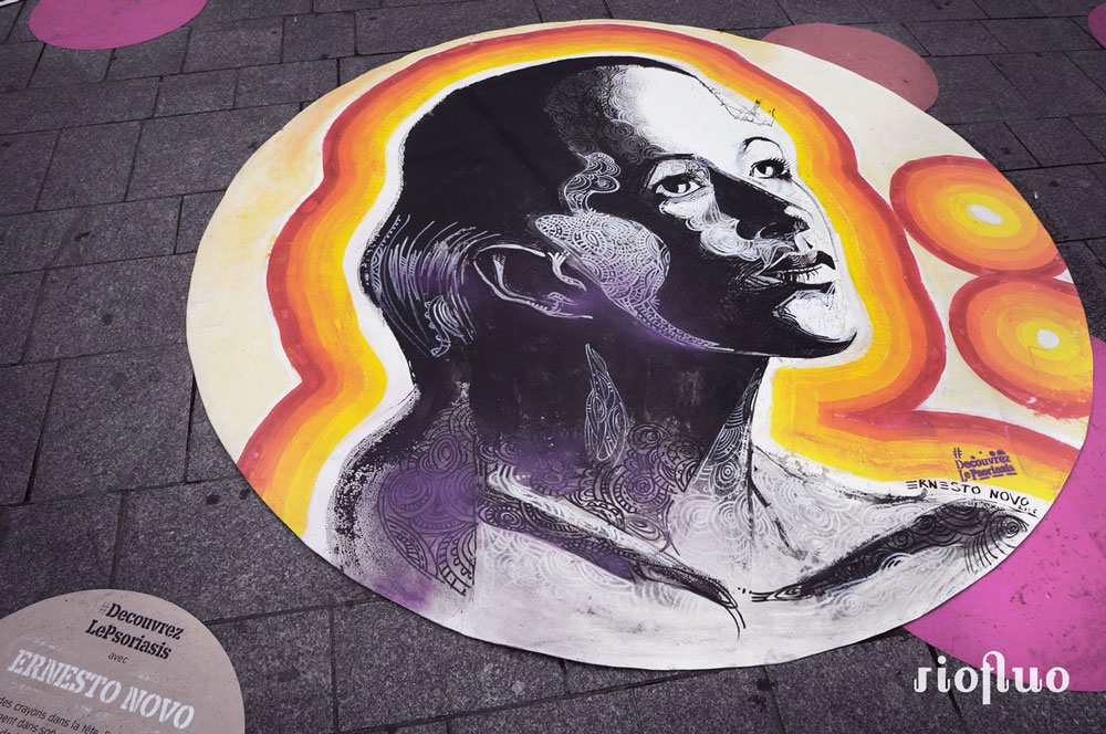 5 street artistes se sont relayés durant 2 jours pour créer sur des pastilles géantes des œuvres uniques. Par leurs interventions, ces « plaques de peau » deviennent plus attractives et esthétiques et renforcent le message « le Psoriasis n’est pas contagieux » au cœur de la campagne de sensibilisation.