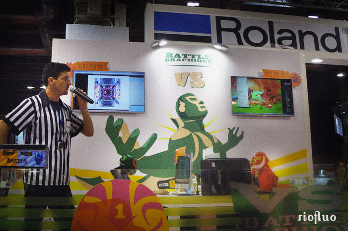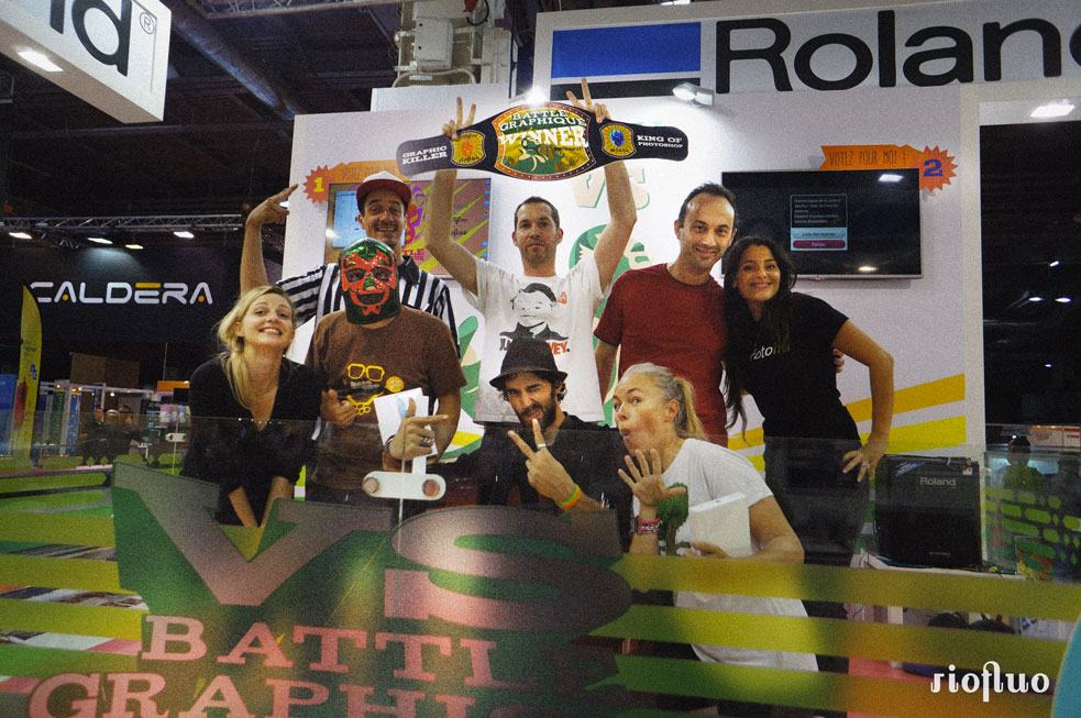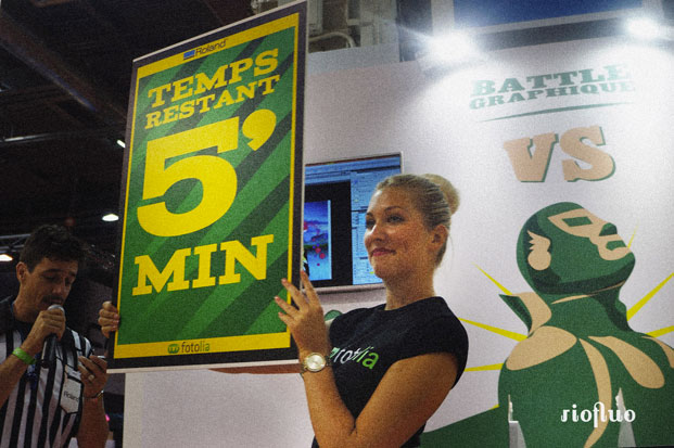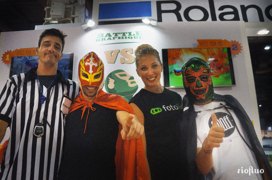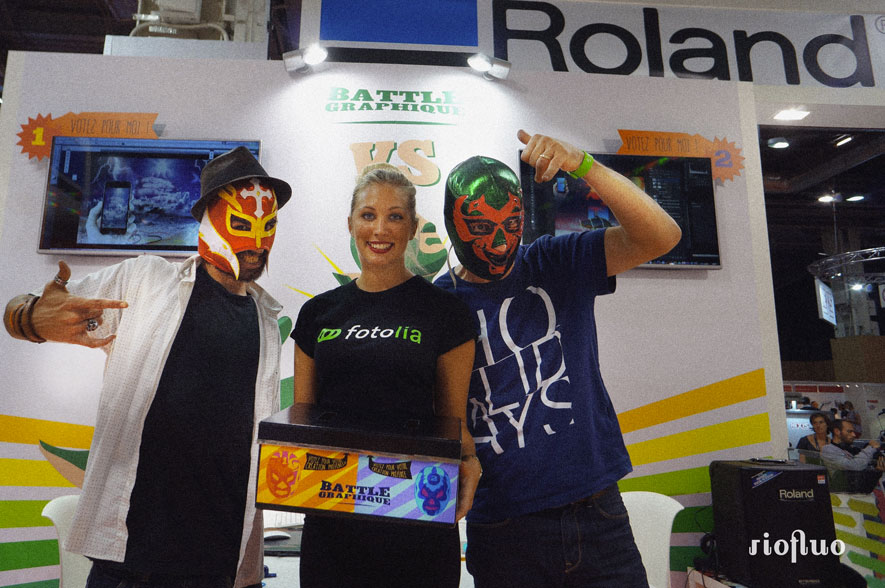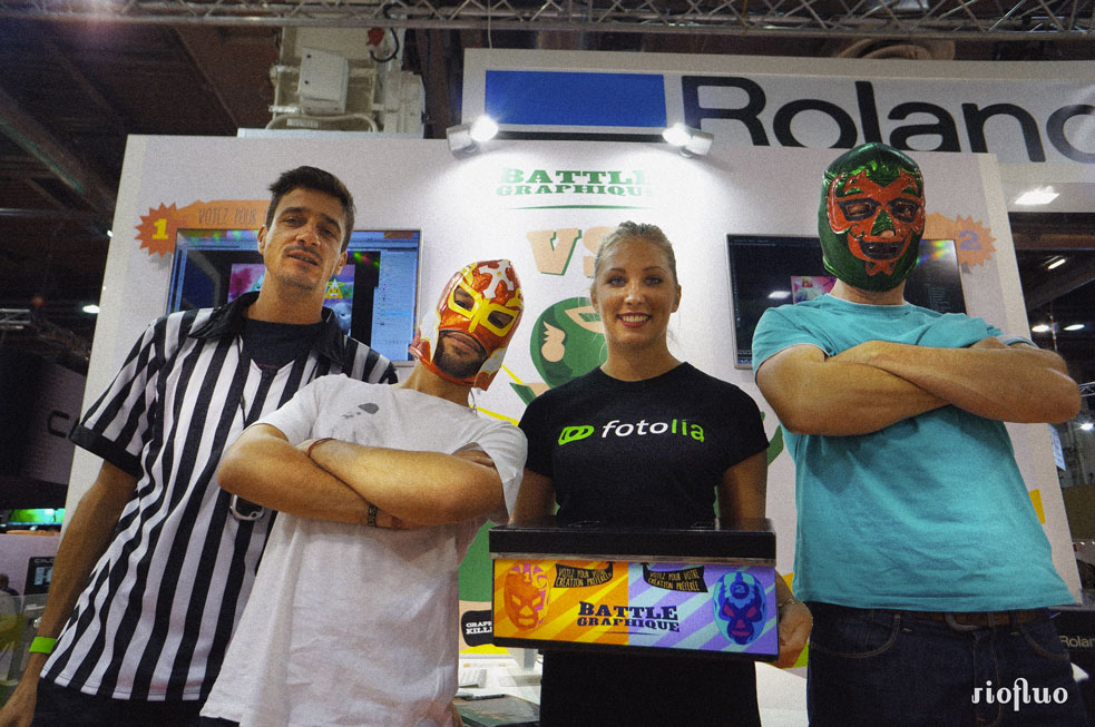 Les 3 jours de Battle ont été revisités en mode Lucha Libre ; le dictateur artistique imposant les règles était déguisé en arbitre, une Fotolia Girl passait sur le ring pour annoncer les gages et le timing, les graphistes se voyaient transformés en Luchadors le temps de leurs combats. Grâce au concept de « Battle Graphik », RioFluo a valorisé la puissance de la banque d’images de Fotolia et le matériel Roland, leur offrant un beau moment de visibilité dans une ambiance survoltée et ludique.