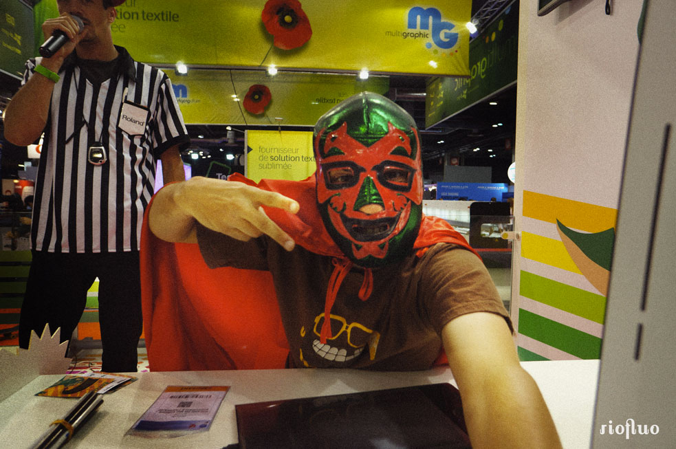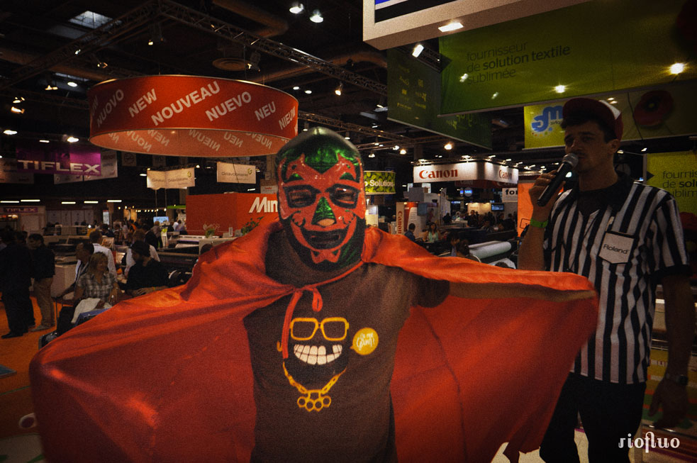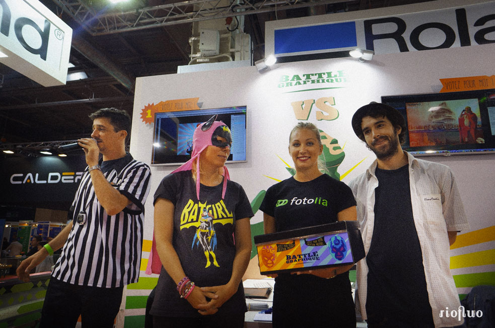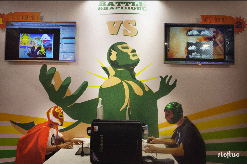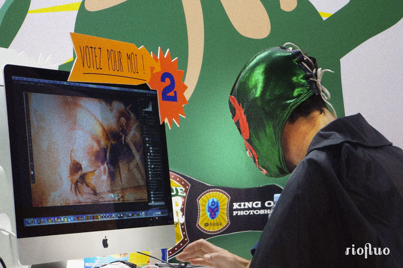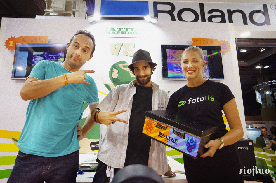 Les 3 jours de Battle ont été revisités en mode Lucha Libre ; le dictateur artistique imposant les règles était déguisé en arbitre, une Fotolia Girl passait sur le ring pour annoncer les gages et le timing, les graphistes se voyaient transformés en Luchadors le temps de leurs combats. Grâce au concept de « Battle Graphik », RioFluo a valorisé la puissance de la banque d’images de Fotolia et le matériel Roland, leur offrant un beau moment de visibilité dans une ambiance survoltée et ludique.