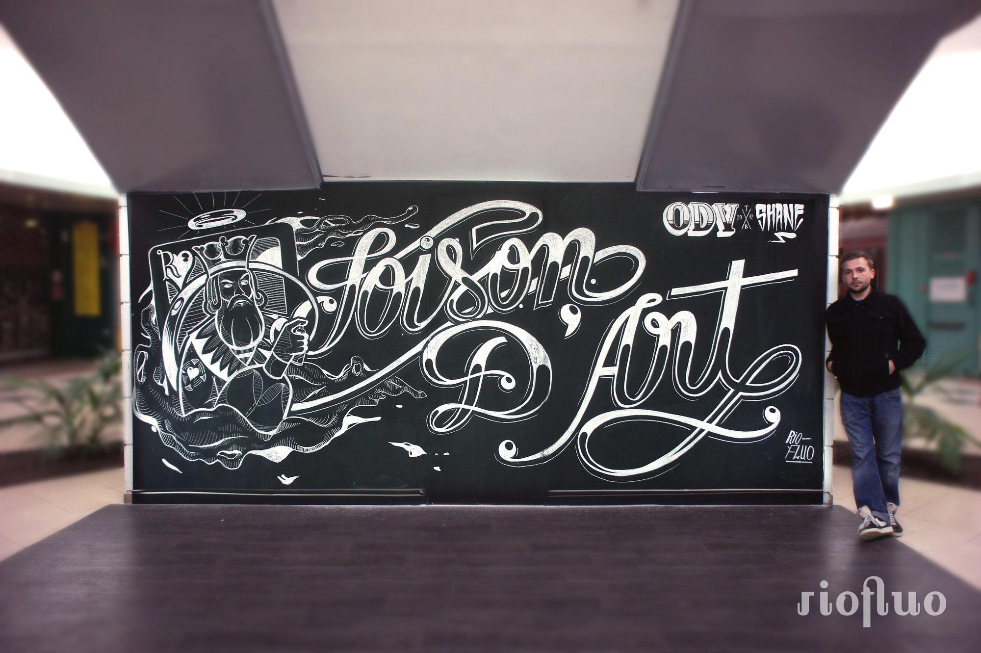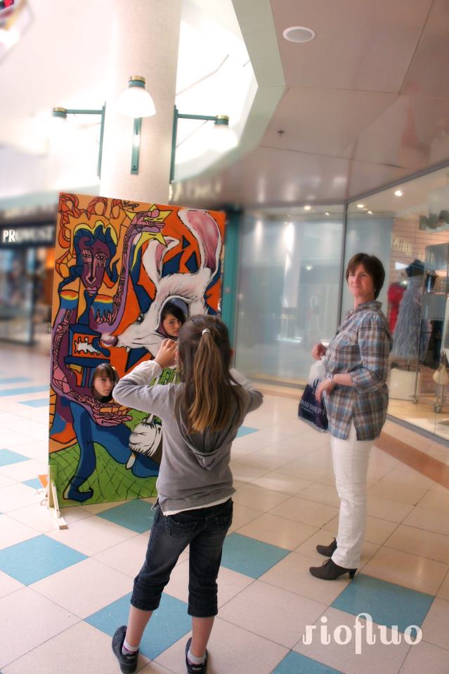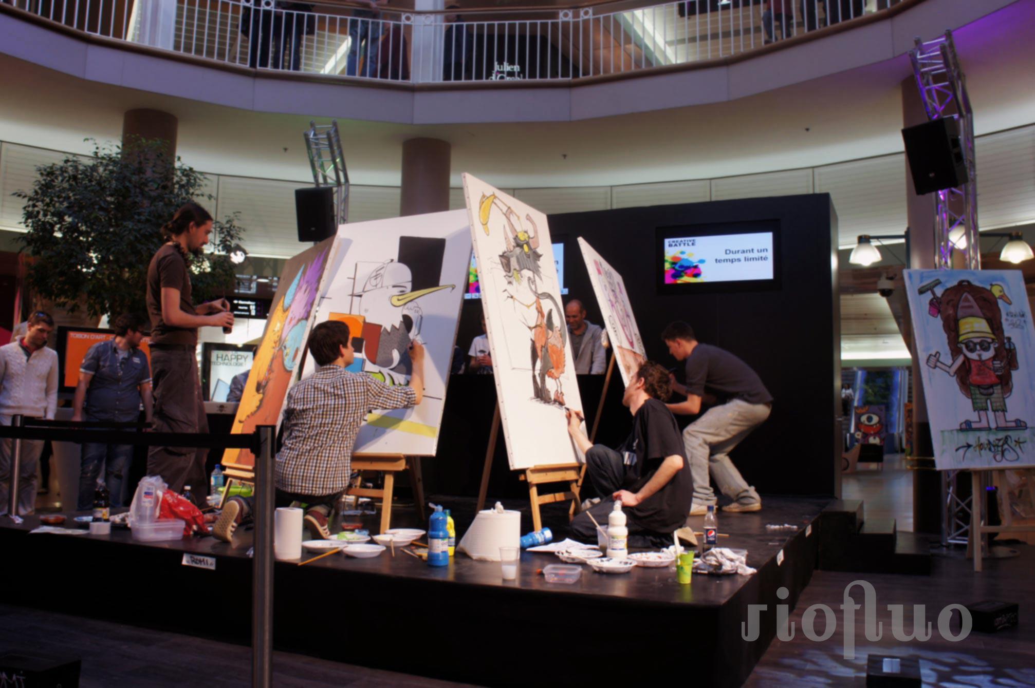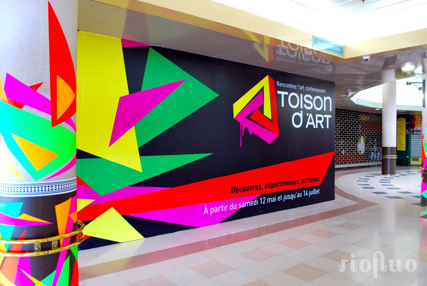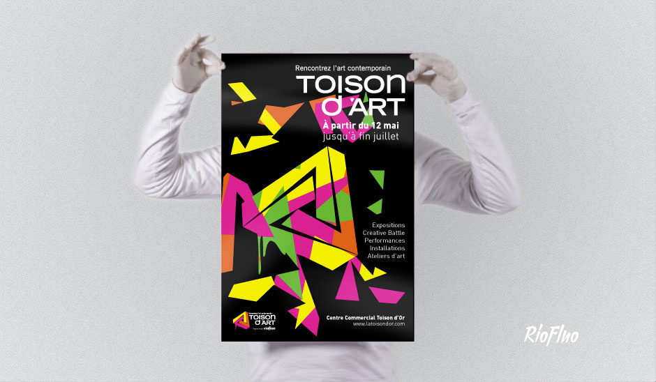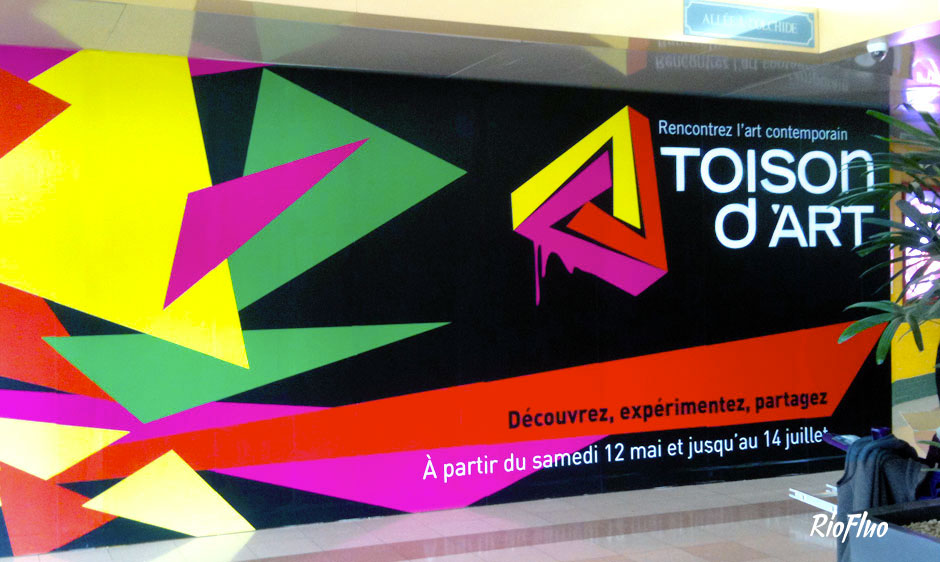 Résidence Toison d’Art Centre commercial Dijon Le centre commercial la Toison d’Or, en pleine modernisation, a demandé à Riofluo de s’approprier une partie du centre vidé de ses magasins afin de créer un espace culturel. Cette résidence d’art contUNemporain, baptisée Toison d’Art et organisée pendant 3 mois par Riofluo, fut l’occasion de proposer à une trentaine d’artistes de créer des installations artistiques dans les anciens magasins. Nous avons créé toute la communication visuelle, mis en place des évènements toutes les semaines, créé une salle d’exposition réservée aux artistes de la région, organisé des ateliers de graffiti, de light painting, des battle street-art et bien d’autres animations. Résidence artistique, Dijon, Toison d’or, culture, art, lieu à vivre.