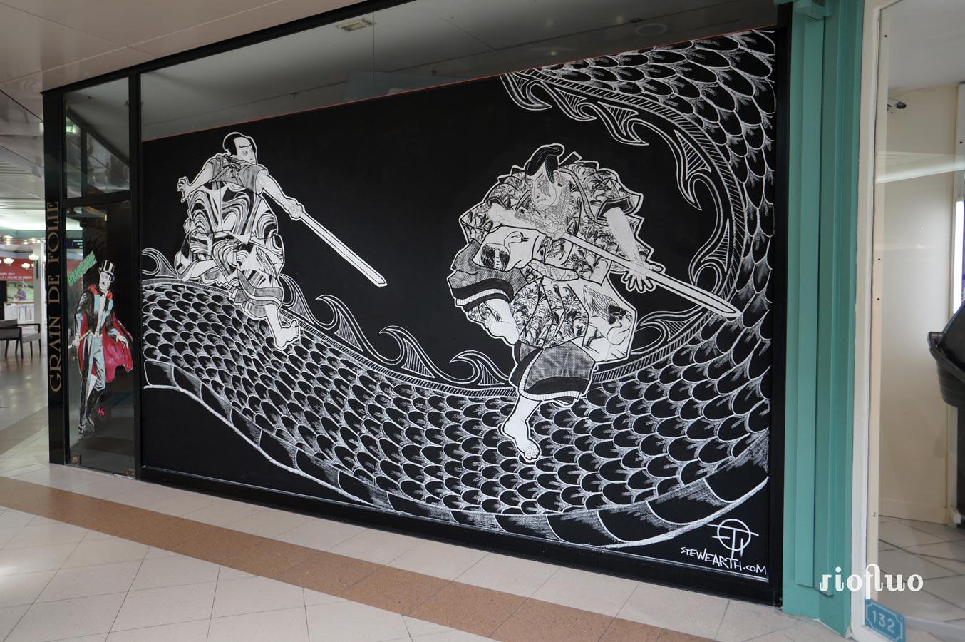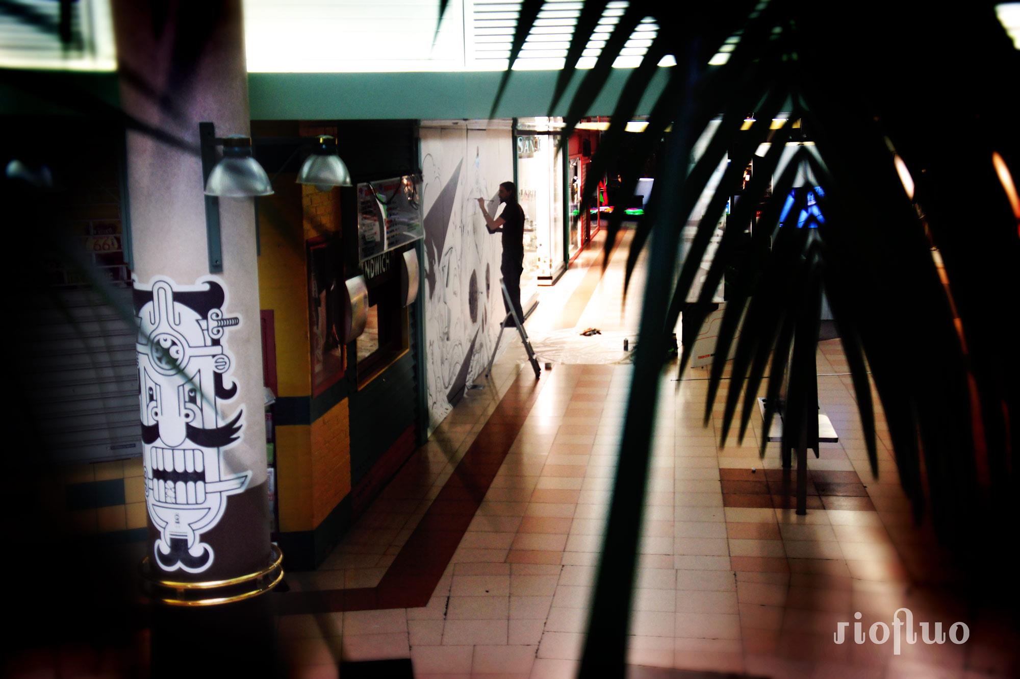 Le centre commercial la Toison d’Or, en pleine modernisation, a demandé à Riofluo de s’approprier une partie du centre vidé de ses magasins afin de créer un espace culturel.
